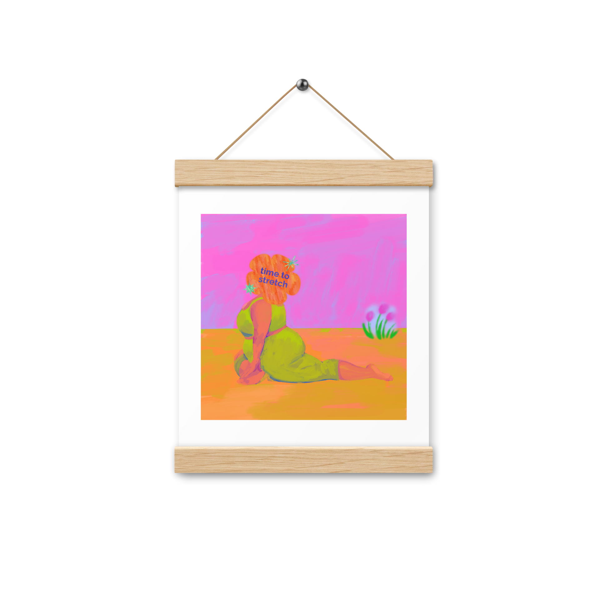 This vibrant art print playfully reminds us it's "time to stretch," both physically and mentally. Featuring a colorful illustration of serene (but perhaps slightly pensive) person in a yoga pose, it's the perfect blend of humor and mindfulness. Hang it up and let the good vibes (and gentle stretches) begin!