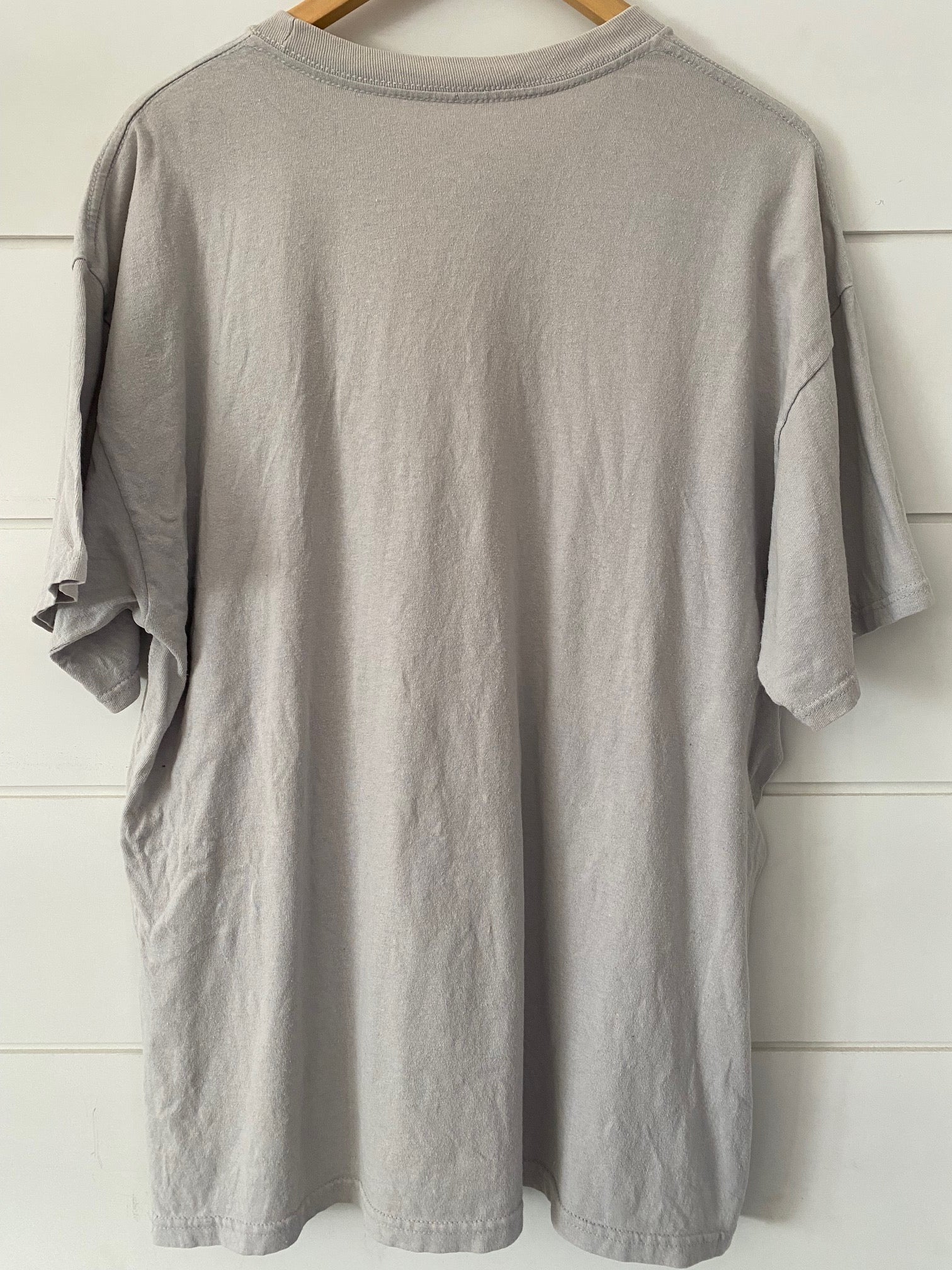 Add a touch of classic rock-inspired style to your wardrobe with this vintage John Lennon gray graphic tee. The shirt features a bold black-and-white print of an iconic, retro-looking.